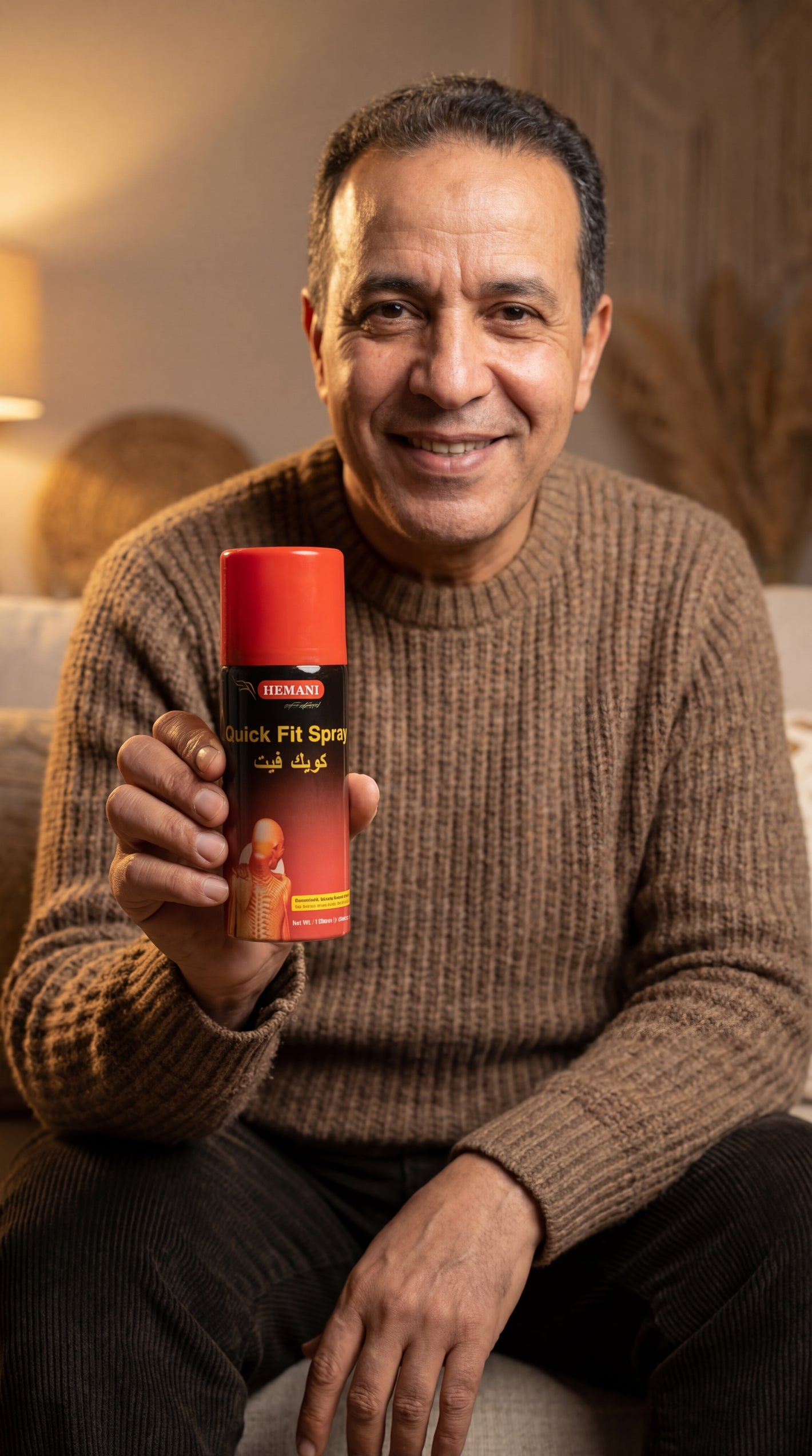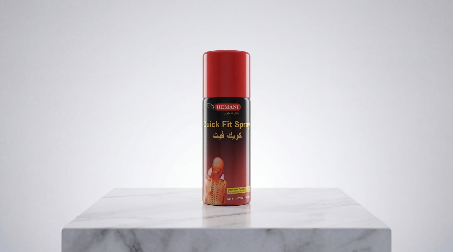 يرشّ مباشرة على المكان المؤلم، يخترق الجلد بسرعة وينشّط الدورة الدموية.
